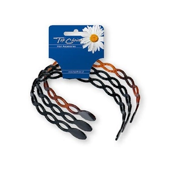 TOP CHOICE Opaska ażurowa - komplet - 3 sztuki (czarna błysk + czarna mat + bursztyn)